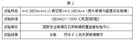 表2的试验,确定了EVA真空夹层玻璃的安全性能。