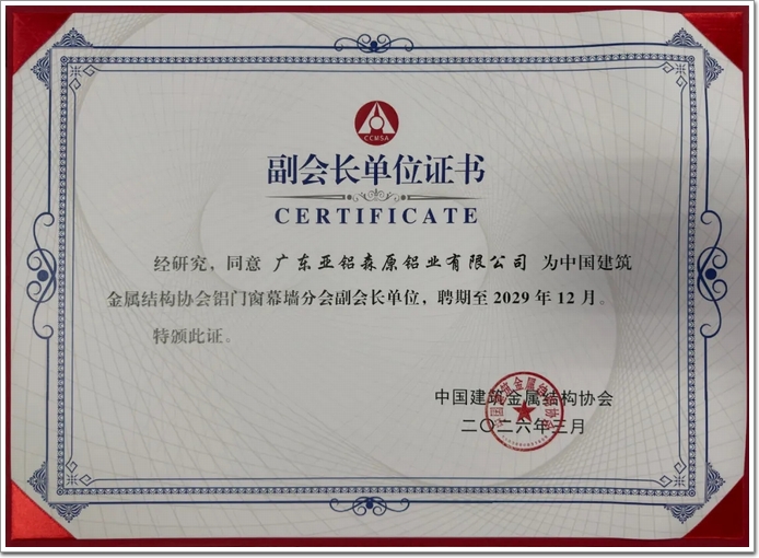 此外,深耕铝加工行业36年的AAG亚铝,凭借多项权威认证及众多地标(词条“地标”由行业大百科提供)项目供货经验,以及始终坚守品质初心、深耕技术创新的精神。中国建筑金属结构协会授予AAG亚铝为中国建筑金属结构协会铝门窗幕墙分会副会长单位,这一认可进一步彰显了品牌在行业内的核心地位与影响力。