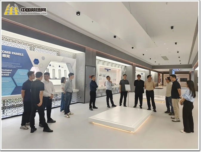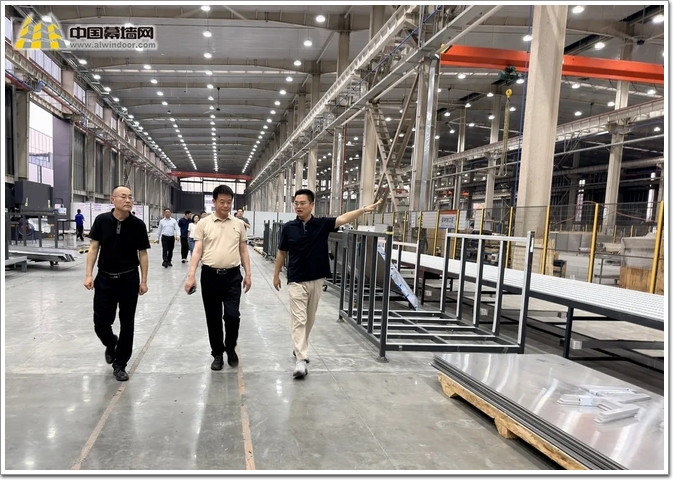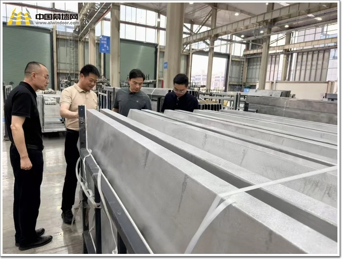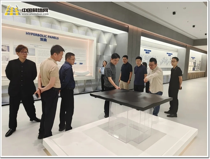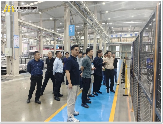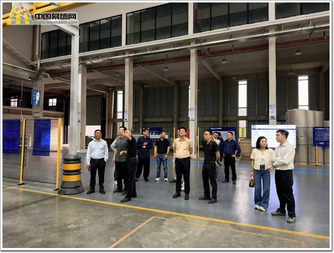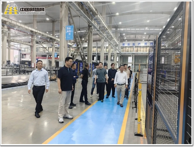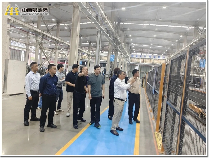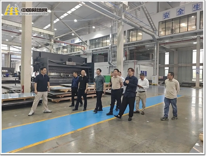 在热情的交流结束后,胡秘书长等幕墙专家团一行在朱振军董事长,王雪松、柏跃福副总经理,以及副总工程师陈锐、市场部经理谢沛家、区域销售经理胡莹的陪同下,移步至智能化生产车间。