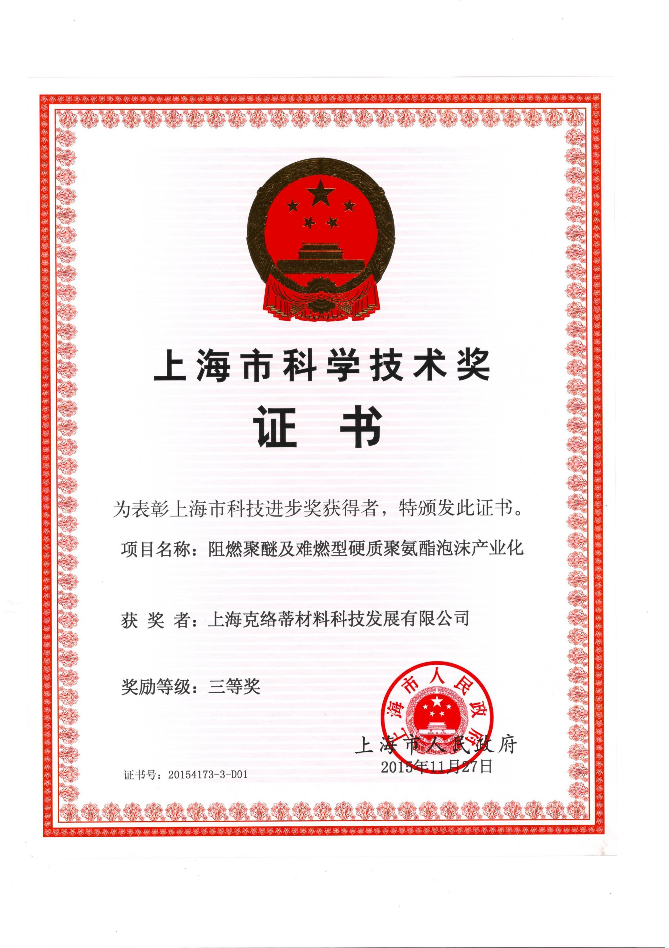 上海市科学技术奖(三等奖)