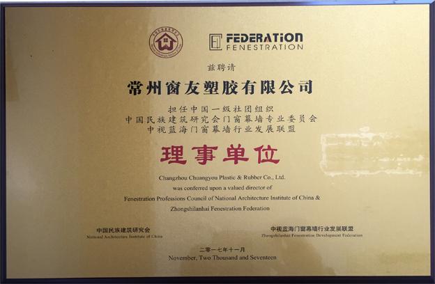 中国民族建筑研究会门窗幕墙专业委员会理事单位奖牌 |