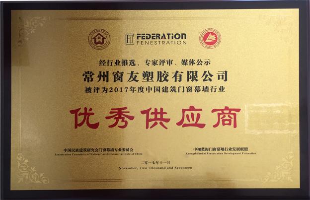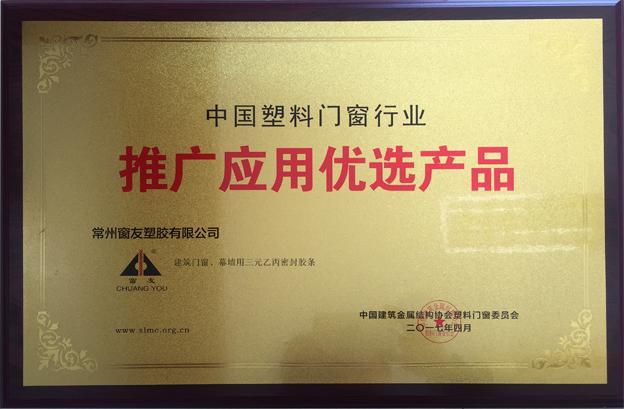 中国塑料门窗行业推广应用优选产品奖牌 |