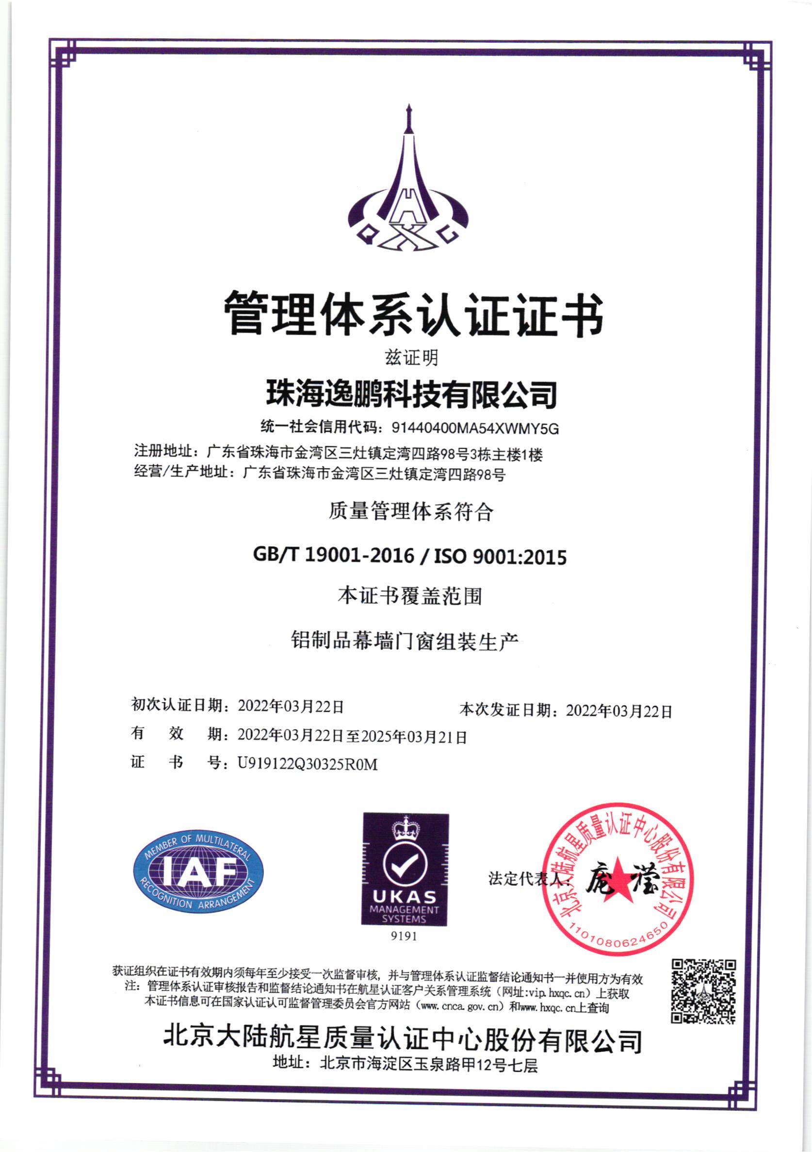 管理体系认证证书
