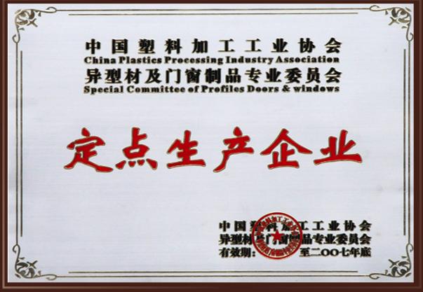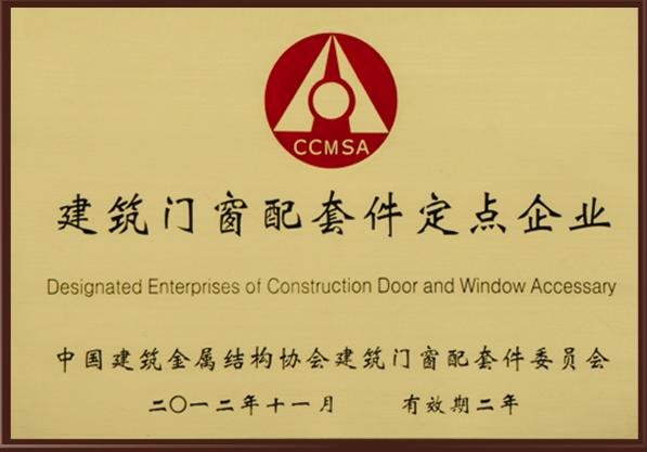 证书名称: 建筑门窗配套件定点生产企业奖牌