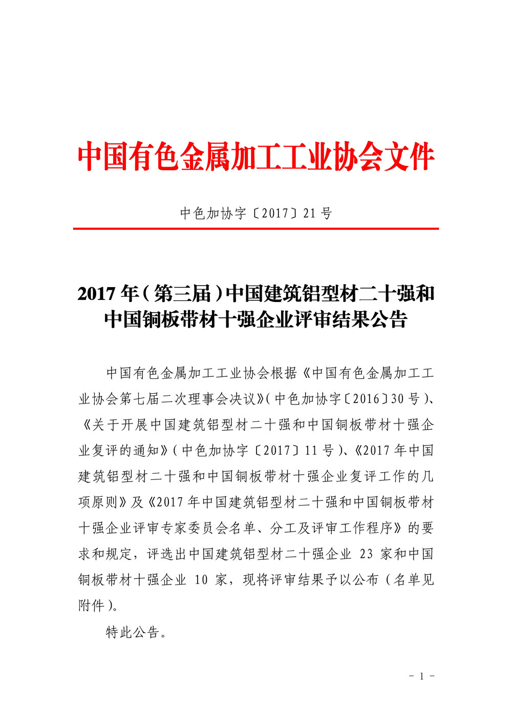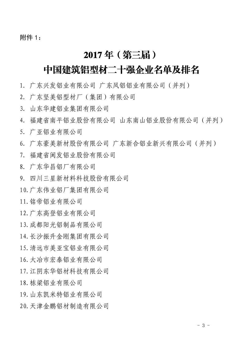 2017年第三届中国建筑铝型材二十强
