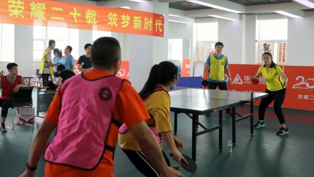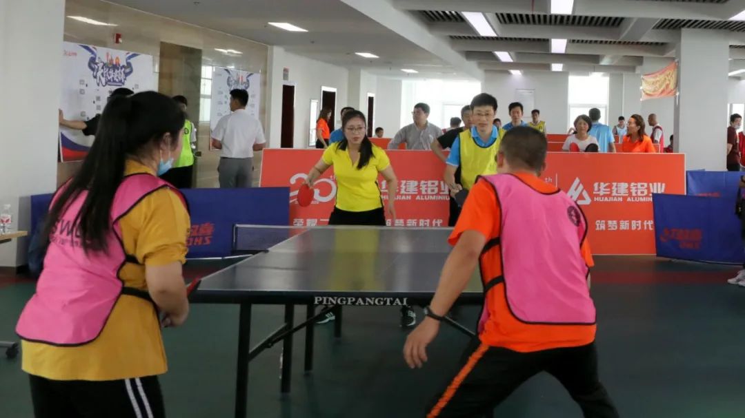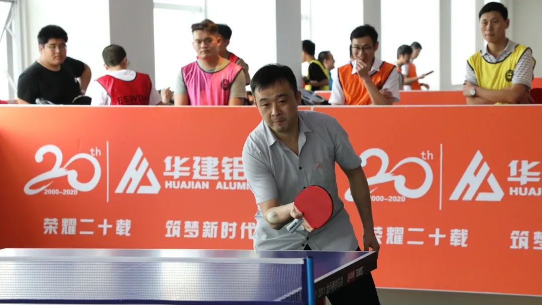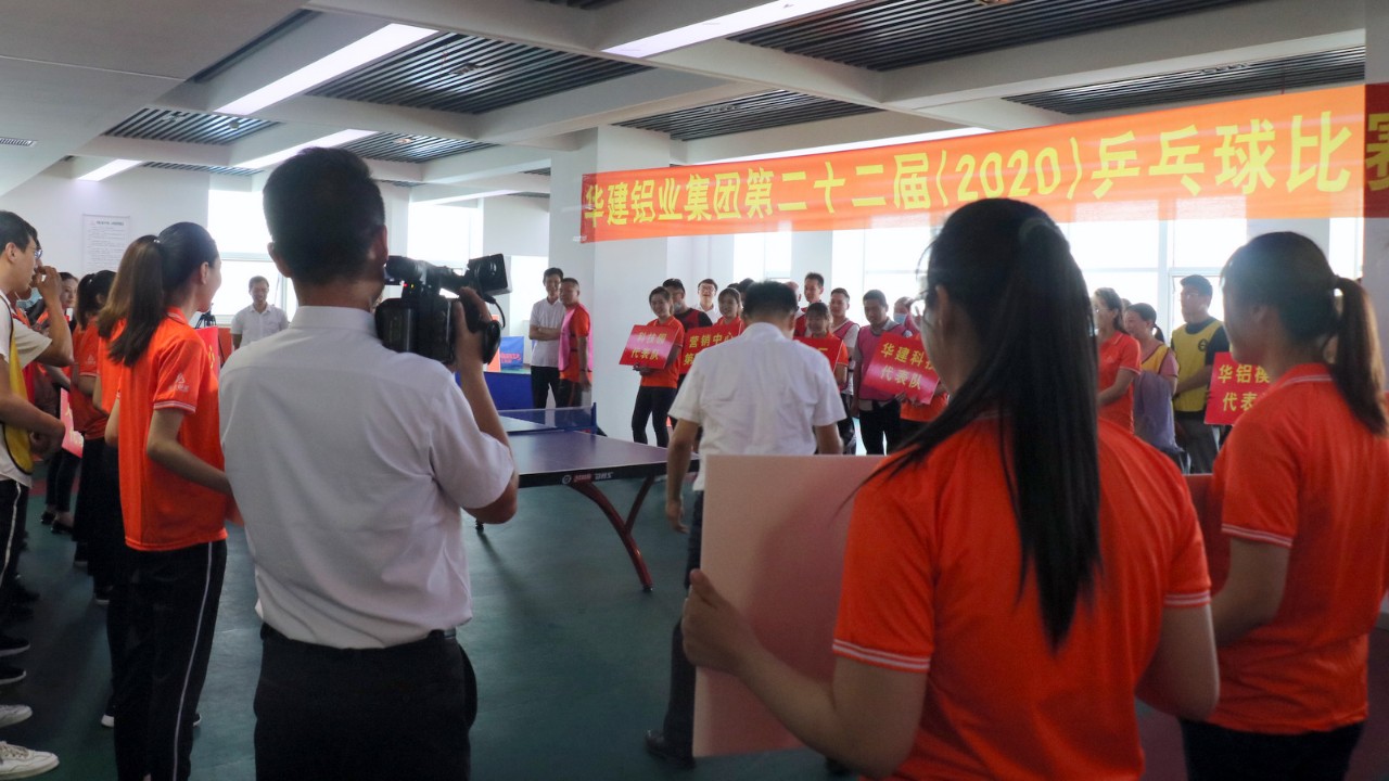 乒乓跃动 激情飞扬——华建铝业集团第22届(2020)乒乓球比赛激情举办 2020年是华建铝业建厂20周年。 5月29日,集团隆重举办了第22届(2020)乒乓球比赛,以此向华建铝业建厂20周年献礼。集团副总裁、成员企业管理中心总裁、华建职业培训学校校长、华建乒乓球俱乐部主席申汝礼,集团副总裁、人力资源管理中心主任张连太,集团党总支书记、工会主席王庆民,集团行政管理中心主任、总裁办公会秘书长张树东,出席了比赛启动仪式,并为比赛开球。 来自集团各职能部门、分厂部门车间、成员企业的百余名选手、乒乓球爱好者,以及近二十位礼仪引导人员参加了启动仪式和比赛。 比赛启动仪式 启动仪式开始
