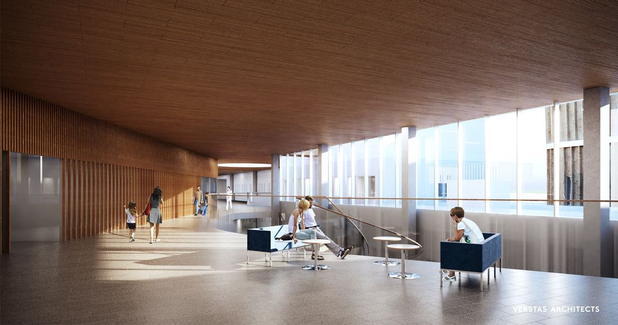 建筑的外观、布局、材料和环境也考虑了自然采光,旨在创造一个愉快的氛围。 图片来源:VerstasArchitects