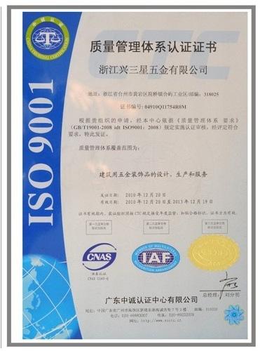 浙江省建设金属制品协会会员证 |
