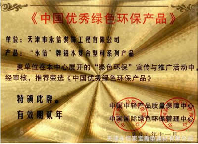 中国优秀绿色环保产品 |