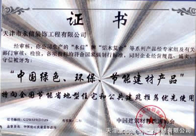 绿色环保、节能节水建材产品推荐证书 |