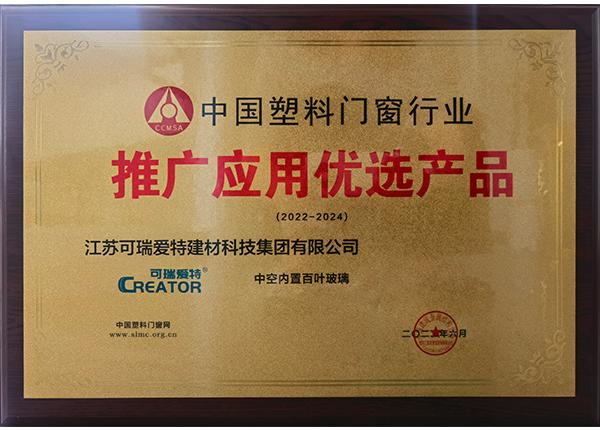 中国塑料门窗行业推广应用优选产品 |