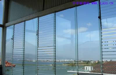 简介 新式玻璃百叶遮阳系统,完美上演“遮阳、装饰、自然风景”三重奏。玻璃百叶通透性最好,叶片选用透明或者磨砂玻璃等不同的材料,可以取得不同的视觉效果。玻璃百叶可以代替玻璃幕墙使用,既克服了幕墙不能开启的缺憾,又保持了晶莹剔透。应用 可完全替代传统百叶窗,用于窗户、幕墙等户外遮阳效果尤佳。功能及特点 1、风的导向作用:调节的叶片,对风向有很强的导向作用,并可随意控制通风程度。让你的空间可永 远充满微风,同时,无需占用过多空间,便可达到自然通风的效果; 2、节能环保:不同房间可相互保持通风状态,中空的叶片有利于保温隔热,小角度的开启又可同时保护私人空间; 3、美观:可用不同材质、颜色的玻璃百叶片,达到装饰效果; 4、简洁:易安装、易清洗,每片百叶均能拆卸,可在拆卸后进行清洗,避免高空作业的危险 玻璃活动百叶; 5、多种开启方式百叶能与门窗结合,组成平推门/窗,平开门/窗等; 6、完美的结构设计可抵抗130km/h风速。