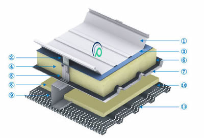 薄板(0.7mm≤板厚≤1.2mm)金属屋面系统又称高级金属屋面系统(金属幕墙系统可参考选用),是以具有自保性防腐能力、轻质、高强、耐久的钛锌、铜、钛、镀铝锌彩板等金属薄板及铝合金、不锈钢薄板作为面材的建筑屋面系统。 产品分类 1)按系统分: 立边咬合系统 直立锁边系统 古典式扣盖系统 平锁扣式系统 平面板条系统 压型板系统 单元板块式系统 2)按材质分:铝合金、钛锌、铜、不锈钢、钛、镀铝锌彩板等薄板的金属屋面系统。 特点 1)立边咬合系统 (1) 整体结构性防水、排水功能,无论建筑形状如何,均能完全咬合接缝,整个屋面没有钉孔,既可以使屋面在温度变化时自由伸缩,避免温度应力,又杜绝了由系统螺钉固定方式所造成的漏水隐患。 (2) 无须化学嵌缝胶,免除污染与老化问题。 (3) 成熟的整体式屋顶开洞和防雷系统设计。 (4) 透气性好,保持整体结构的长期自然干燥,延长建筑使用寿命。 (5) 三维弯弧特异造型易加工。 (6) 结构简洁、轻巧、安全,能抵抗高强负风压,在台风、暴雨地区尤其适用。 (7) 也适用于旧屋顶的翻新和在旧屋面上加建新屋顶。 (8) 施工安全、简单、快速、准确、经济。 2)直立锁边铝镁锰合金金属屋面系统 ⑴、直立锁边铝镁锰合金金属屋面系统的核心构成,是基于直立锁边咬合设计的特殊板形的金属板块,这种设计主要针对大跨度自支承式密合安装体系。在屋面上看不见任何穿孔,因为支承的方式是隐藏在面板之下的。屋面板块的连接方式是采用其特有的铝合金固定支座,板块与板块的直立锁边咬合形成密合的连接,这种板块的咬合过程无须人力,完全由机械自动完成,而咬合边与支座形成的连接方式可解决因热胀冷缩所产生的板块应力,该优势反映在可制作纵向超长尺寸的板块而不因应力影响变形。同时本屋面系统完整齐全的附件供应可满足各种建筑形式的要求。 ⑵、安全的系统结构。本屋面系统用金属板块制成的屋面已通过其自身多年使用充分证明,是各种住宅、商用建筑及公用建筑理想的选择。所有屋面优先考虑的是防风雨功能,本屋面系统毫无例外的完全解决了这个问题。正负风压取值。参考我国建筑规范的建筑荷载取值,考虑建筑屋高度、体型、位置等因素,并考虑综合风压系数和荷载概率,同时参考德国建筑标准中对建筑屋面工程的取值;主要考虑最大不利荷载为建筑物转角和边缘部位的负风压。 ⑶、屋盖变形。金属建材在大温差情况下的热胀冷缩是不可避免的客观规律,本屋面系统总结多年来的使用经验,通过滑动式的T码支座,将铝板的热胀冷缩平均分配同步涨缩,使巨大的温度应力通过适当的涨缩得以舒缓,而不会将板块挤压变形或拉裂;保证整体系统在长达50年的使用过程中安全地工作。本屋面系统单块板块的长度可达120M,板块与板块之间无任何潜在漏水的搭接缝,充分保证完全的防水。排烟口、天窗、管线的出口可直接穿出,附件均可使用特殊工艺保证水密性。隐藏的本屋面系统支座,稳固的支承板块结构,无须穿出屋面表层,风、霜、雨、雪、负风压的荷载都被安全的吸收。本屋面系统有效的分解大温差在屋面形成的应力,即使超长板块也有足够的胀缩空间,而不会将结构挤压或张拉变形。 ⑷、防火性能。本屋面系统板块可抵抗火花及火焰,金属屋面板块达到A1级防火标准) 5、特殊结构。过道、摄影台、太阳能收集系统、挡雪杆等都可安装在本屋面系统板块立边上,无须铆接,屋面表面不受破坏仍保持完整以保证永久性密封。重要的穿出物如烟囱、天窗等可在连接部位焊接,充分保证连接点密封和稳固。翻新项目同样足以信赖。本屋面系统板块具有高稳定性和低重量的特点,这使得其在翻新项目中机具优势,旧建筑的荷载不会增加太多,而可以自由的设计运用。 6、本屋面系统安全的投资。本屋面系统数多年来大量的工程案例说明,抗腐蚀的烤漆金属材料赋予建筑超卓的稳定性和免维护的优点。难以计数的本屋面系统产品不断证明本屋面系统都在不断增加建筑物的价值。 7、完整的系统。一个用于屋面与幕墙的良好系统,应该提供经济性良好的设计与应用。本屋面系统提供完整的附件支座、檐口收口板、U型槽、各种收口板、管件夹口等,各种附件都可采用与板块相同材质、颜色的材料。 8、防噪音。本屋面系统已大量使用于众多建筑,事实上即使在暴风雨时,都很难听到噪音。测试表明,瓦屋面与本屋面系统金属屋面在同等条件下,内部噪音只相差2-3分贝,与实际的听觉效果比较,3分贝是人耳分别不出的差异。 9、防雷特性。屋面体系与结构整体防雷体系紧密连接,充分解除雷电破坏、静电积留的问题。本系统屋面的金属板块均为良好的建筑外维护系统材料,铝镁锰合金都是良好的导体。单一的整块板块不仅仅提供水密性,而且是良好的导体,即便在有搭接的部位仍不影响其雷电保护性能。实际施工方法是:在金属屋面纵向、横向每隔6-10米的屋面板下隐藏做一个接地,在接地点安装角码,一头固定在檩条上,另一头固定在T型码支座上。固定在檩条上的接地可以连接其他单位施工的防雷系统。 适合的屋面板材料: 铝镁锰合金板、镀铝锌钢板板; 适合的屋面板材料厚度:0.6mm-1.0mm 屋面立边高度:65mm 屋面立边距:300-400mm 3)古典式扣盖系统 (1) 整体结构性防排水功能。 (2) 无需化学嵌缝胶填缝,免除污染
