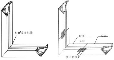 (2)严格控制组角及组装的工序质量,组角前框、扇角边部位要注胶。中挺与框连接时,应在中挺的两个型腔内打孔注