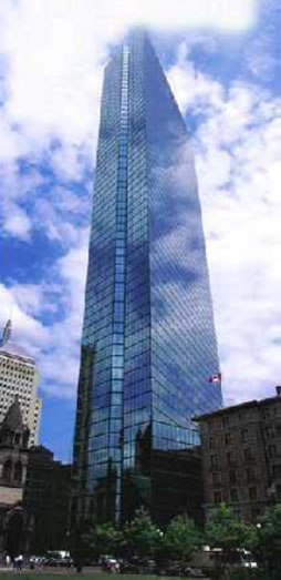 眩光。西格拉姆大厦的染色玻璃幕墙,虽然还没有达到米斯所设想的高反射全玻璃幕墙的境地,但它新颖的造型与较为适用的功能,避免阳光的曝晒,节约制冷费,还可避免恼人的眩光,使西格拉姆成为当时颇负盛名的建筑。1971年建成的60层高的波士顿汉考克大厦的