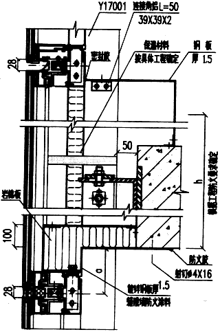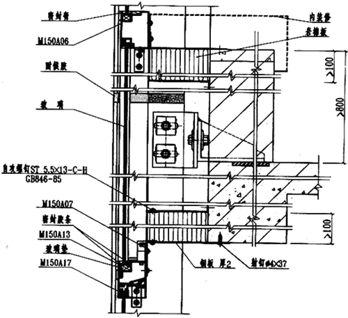 图4 非透明幕墙—玻璃幕墙后置混凝土梁上砌砖墙