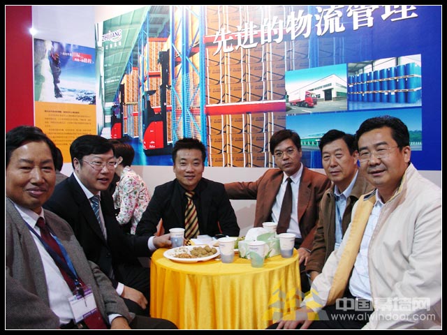 铝门窗幕墙委员会专家与之江市场总监张旭(中)亲切交谈