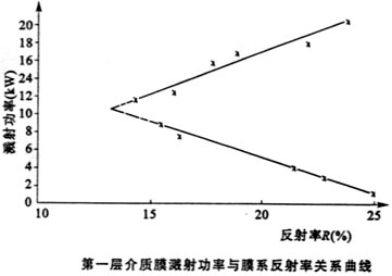 介质膜的膜厚与膜反射率的关系曲线存在一个转折点。在介质膜的膜层较薄阶段,膜系的反射率随着膜厚的增加而下降,达到转折点(转折点在溅射功率为7~9kW之间,厚度为35~45nm之间,反射率为13%~14%)后,随着厚度的逐渐增加,反射率逐渐上升。这种现象的出现原因如下: