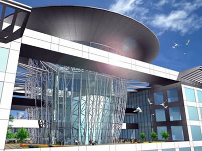 标志性建筑。建筑师为会展中心设计了独特而又美观的造型,而中间的中心玻璃体花篮,更是整个建筑物特有的焦点所在。中心玻璃体花篮外露的幕墙支撑