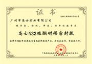 建筑门窗推荐产品证书(高士N33硅酮耐侯密封胶)