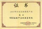 行业达标推荐产品证书(高士N50硅酮中空玻璃密封胶)