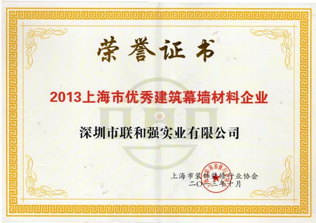 2013上海市优秀建筑幕墙材料企业证奖牌 |