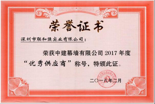 2014中建幕墙有限公司“优秀供应商”证书 |