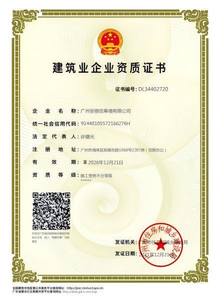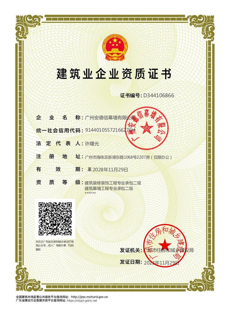 建筑装修装饰工程 专业承包二级 建筑幕墙工程专业 承包二级 |