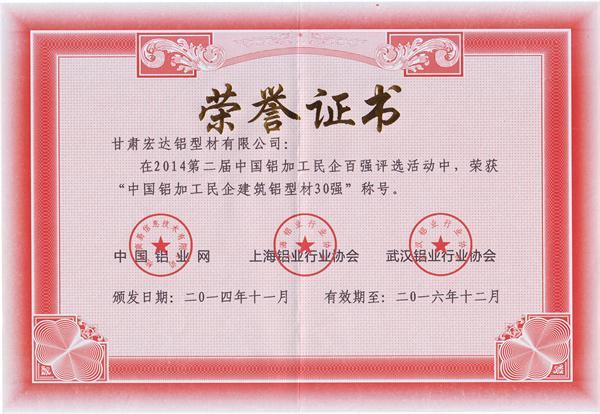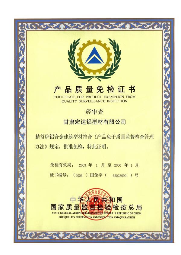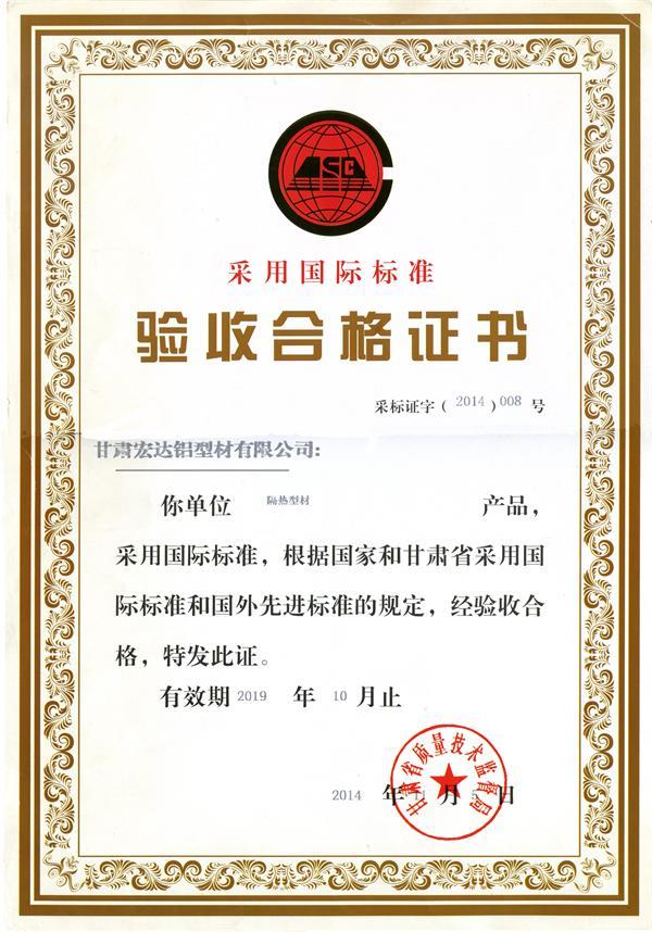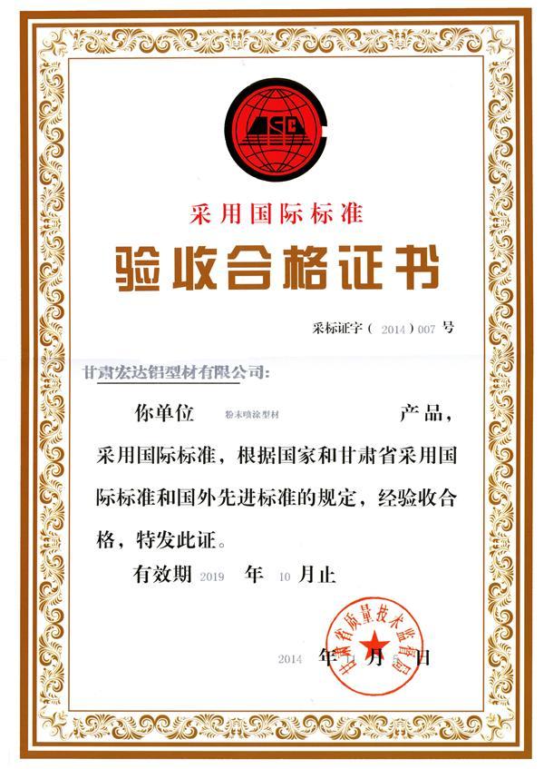 采用国际标准产品验收合格证书-粉末喷涂型材 |
