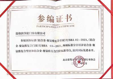 北京建筑五金门窗幕墙行业协会参编证书 |
