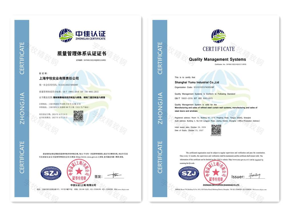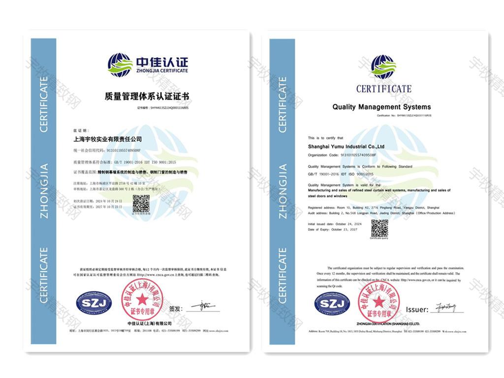 证书类型: 质量管理体系