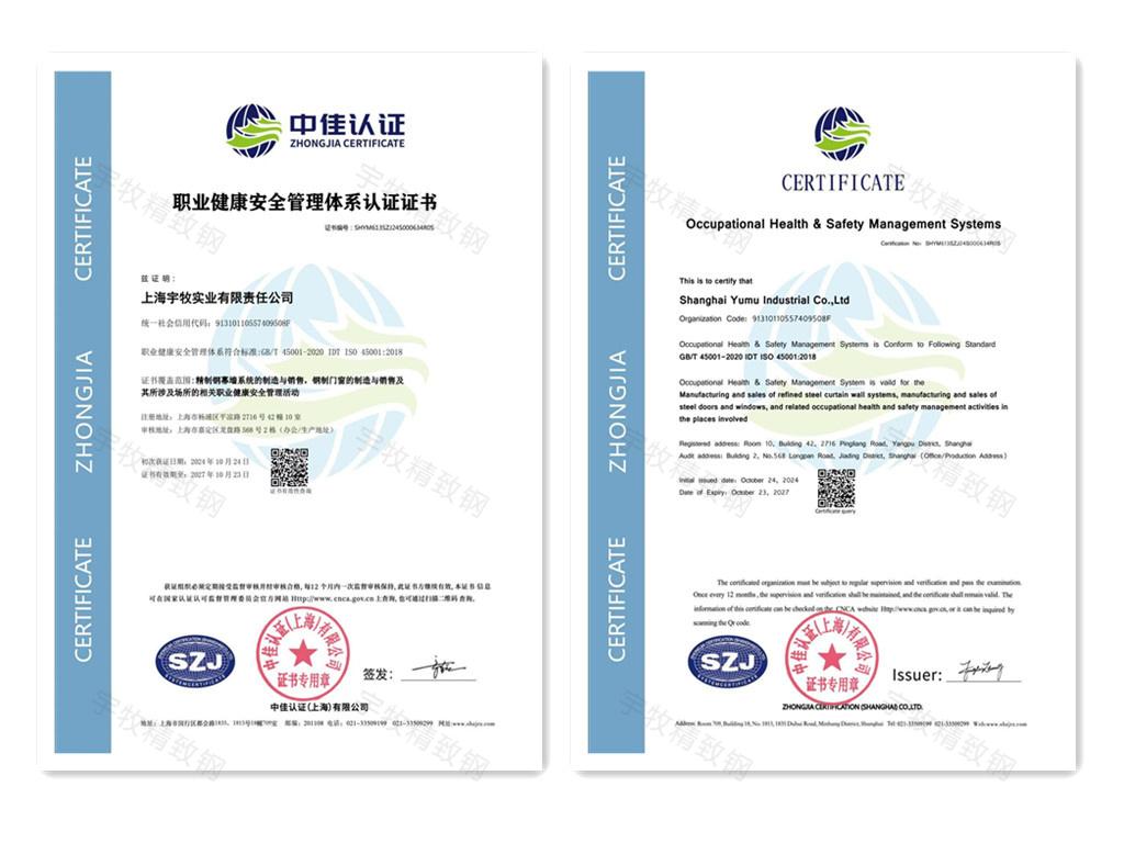 证书类型: 职业健康安全管理体系