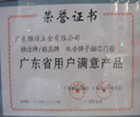 雅洁五金荣获品质证书