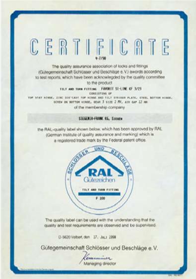 中国建筑金属结构协会建筑门窗配套件委员会副主任委员证