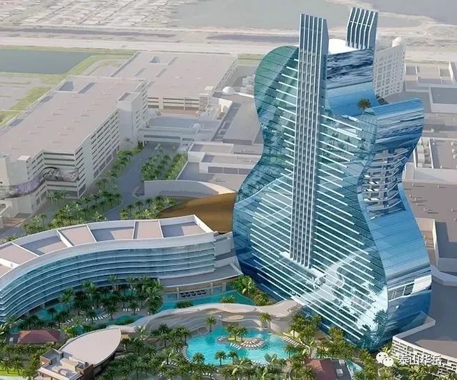 全球首栋吉他大厦位于佛罗里达州好莱坞的塞米诺尔硬石酒店及赌场是物业扩张的一部分,估计耗资15亿美元,共36层,这座400英尺高的吉他形酒店非常引人注目。
