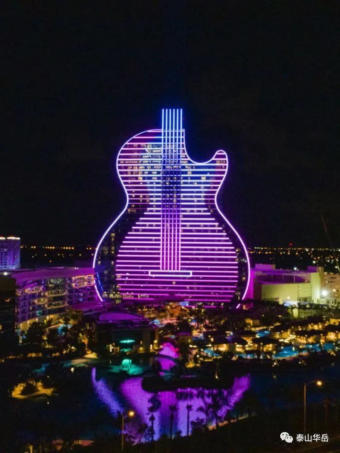 吉他造型,配合灯光、烟花、音乐,更强的带入感,置身其中留恋往返,吸引万千游客蜂拥而至,使酒店成为体验性的中心和南佛罗里达州的照明建筑信标。