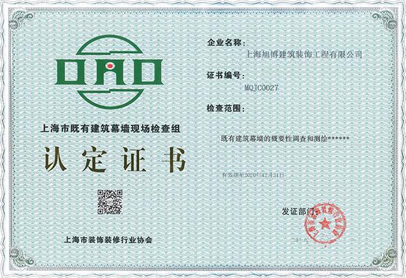 上海市既有建筑幕墙现场检查组认定证书 |