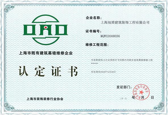 上海市既有建筑幕墙维修企业认定证书 |