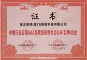中国行业百强AAA级质量信誉社会公认(名牌)企业 |