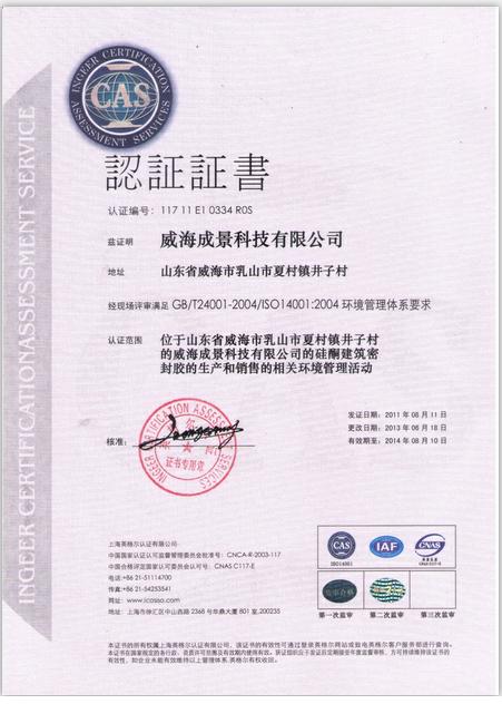 ISO14001:2008认证证书 |