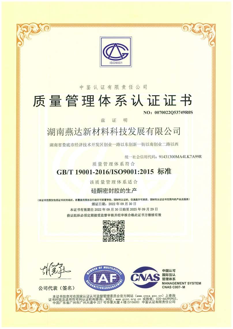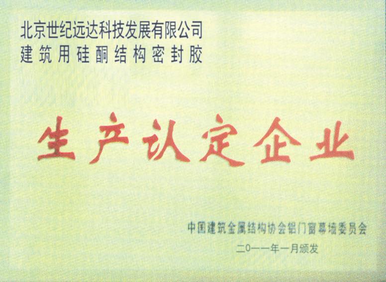 证书名称: 建筑用硅酮结构密封胶生产认定企业