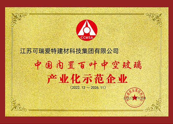 中国内置百叶中空玻璃产业化示范企业 |