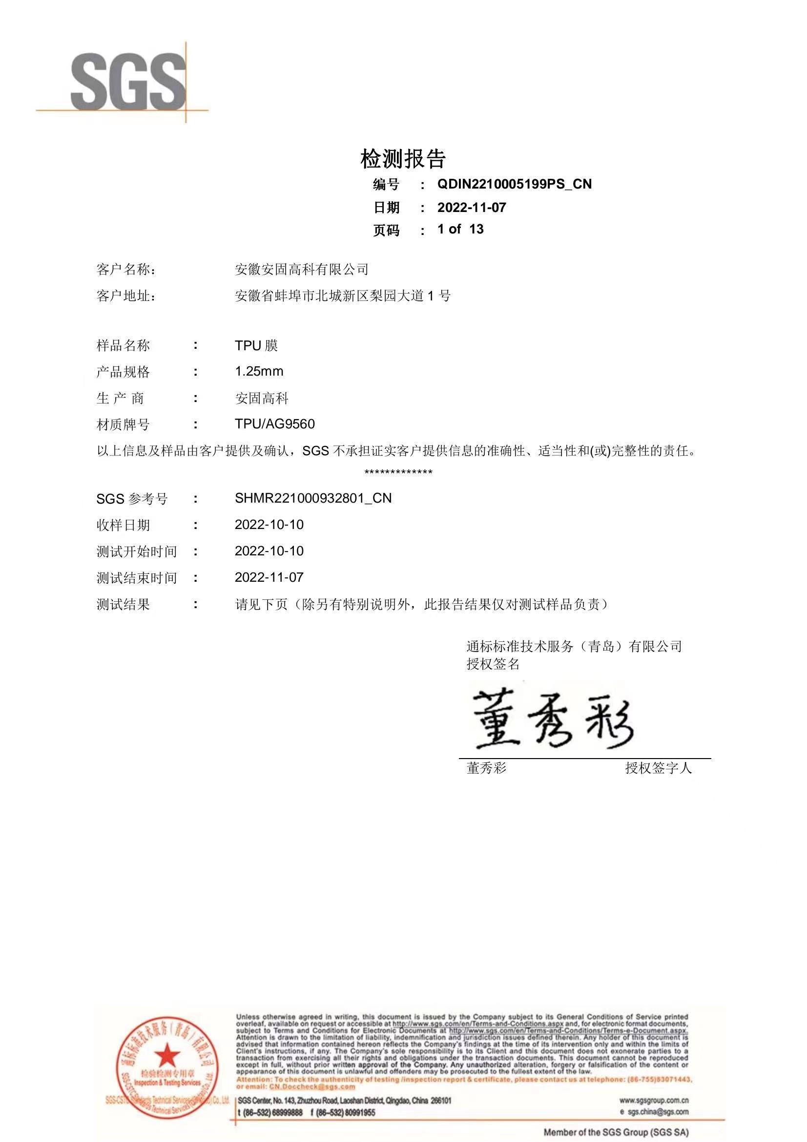 TPU膜SGS报告 |