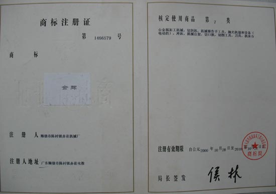 金辉商标注册证 |