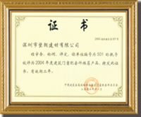 编号为501 的执手被评为二○○四年度建筑门窗推荐产品 |