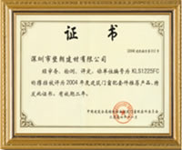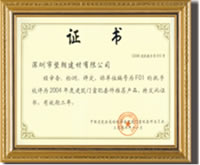 编号为F01的执手被评为二○○四年度建筑门窗推荐产品 |