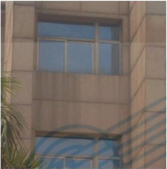 图1、图2分别为某铝板幕墙工程和某石材幕墙工程出现了明显的垂流污染现象。图3为玻璃幕墙的垂流污染现象,观察玻璃幕墙垂流污染有时可能不如石材幕墙和铝板幕墙那样明显,但选取一定的观察角度从建筑物内部向外看,玻璃幕墙垂流污染的流痕有时还是比较明显的。