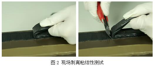 针对不同的施工环境、不同的粘接基材,为了保证粘接性,避免大面积施工后才发现问题,有必要做现场剥离粘接试验。