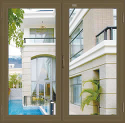 该窗型材是由隔热条将两型材连一起,玻璃采用中空的,其特点密封性能好且节能,适合做房屋外窗,窗的里外可以采用不同颜色的铝型材,是目前建筑外窗普遍采用的窗型。