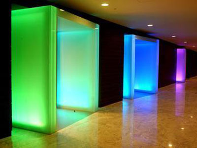 光电玻璃 顾名思义就是光能、电能和玻璃的有机结合体,利用电能使玻璃兼具光亮和通透性。 光电玻璃作为一种新型的环保节能材料,广泛适用于各种工程,大型建筑、室内装潢设计、娱乐场所、户外广告展示应用等方面。 分类 四大产品 LED点阵光电玻璃系列 无论是规整的矩阵,还是满天的星光。色彩随心而定,变化层出不穷。产品还用於标志、隔断、顶棚、内外墙面,艺术效果更为丰实。 LED视频显示玻璃系列 LED视频玻璃是采用独特的创新技术将LED光源复合嵌入玻璃内,使电光技术和传统玻璃融为一体,既保留玻璃的透光特性,又能展示动画及各种炫丽的色彩,大大提升了玻璃的应用范围。 LED平板照明玻璃系列 LED是世纪新光源,它能够直接将电能转化为光能,且拥有最长达8万小时以上的使用寿命,同时具有省电、环保无汞、体积小反应快速、高耐震、可应用在低温环境、光源具方向性、光害少、色彩饱和度高与色域丰富等优点 LED调光玻璃产品系列 使用透明电路,通电後内置LED灯源发光,除光源点外玻璃依然发光。关闭电源後与普通玻璃无异。在室内(或暗处),画面效果清晰绚丽。在强日光下,画面依然清晰可见。无尺寸局限(可按需进行超大尺寸制作)。无形状......